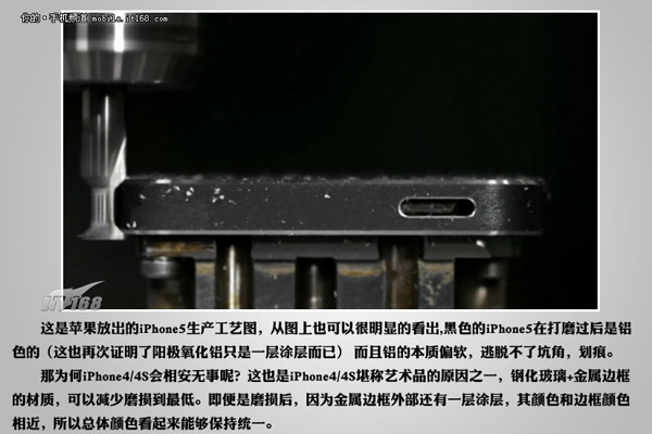 在發布上我們就知道,為了減輕重量,Phone5背殼以及邊框采用的是陽極氧化鋁材質。由于陽極氧化鋁材質極易磨損,因此iPhone5(特別是黑色版)背殼以及邊框的陽極氧化鋁材質是否耐磨便成為了一個大家十分關注的話題。